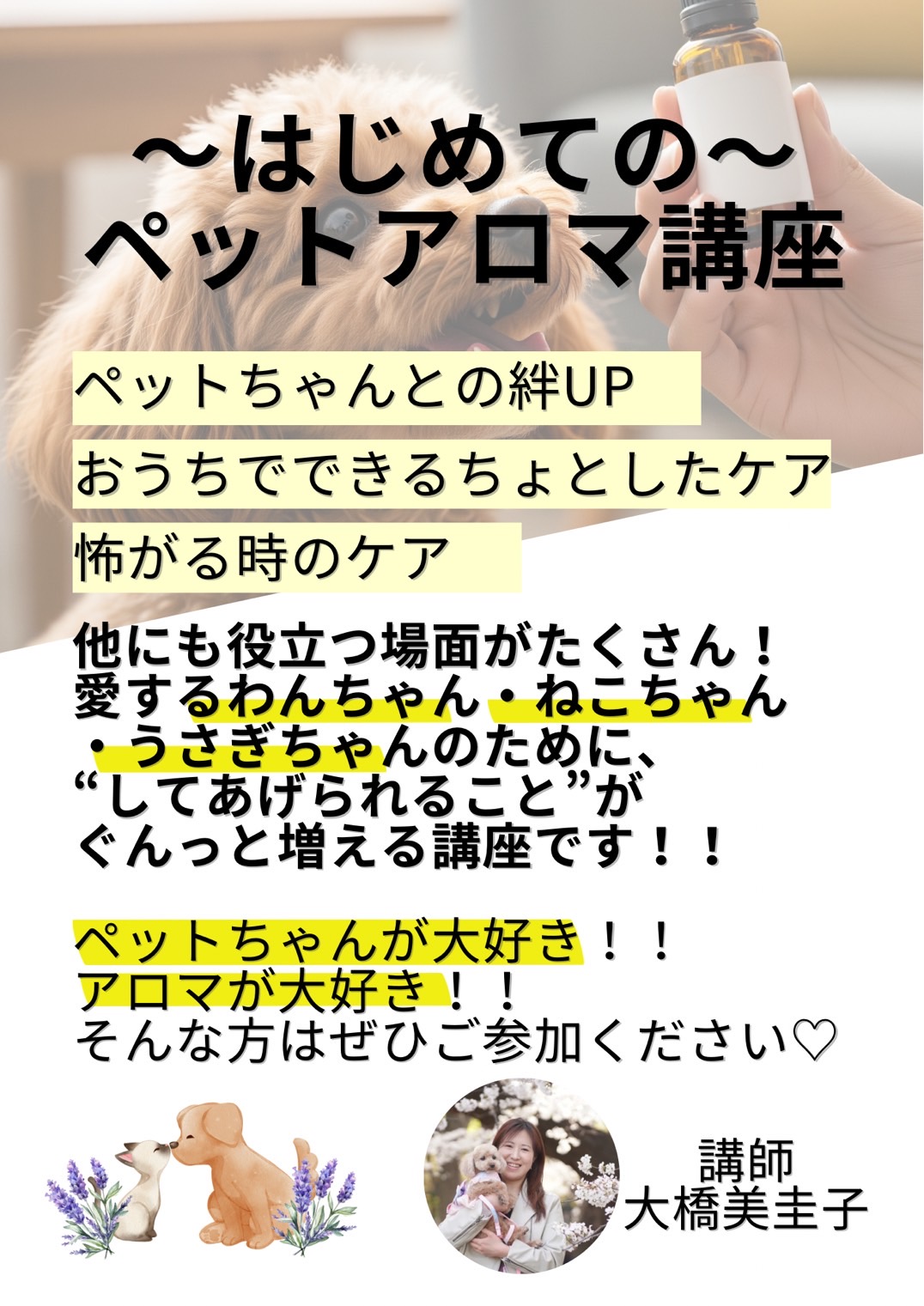 本講座では、初心者の方にもわかりやすく、ペットちゃんに安全にエッセンシャルオイルを取り入れるための基本をお伝えします。