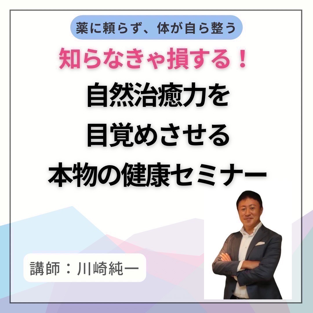 自分のカレンダーに追加 2025-10-14 09:00:00 2025-10-14 10:00:00 \薬に頼らず、体が自ら整う/ 知らなきゃ損する!自然治癒力を目覚めさせる本物の健康セミナー ページはこちら→https://link-event-x.com/node/8415 川崎純一 川崎純一 Asia/Tokyo public