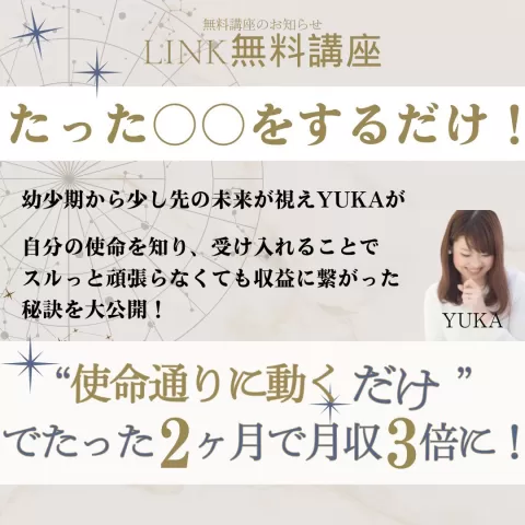 \✨未来先読み✨/スピリチュアルコーチYUKAが導く、 “🌏使命通りに動くだけ‼️”でたった2か月【月収3倍】になった秘訣セミナー✍️