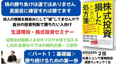 証券会社勤務歴28年の 脱サラ株トレーダーが教える 一生涯、勝ち続けるための 株式投資セミナー <基礎編>第1部 勝ち続けるための第一歩