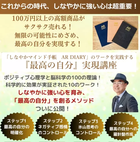 100万円以上の高額商品を創り、最高の自分を実現する! 「しなやかマインド手帳 AR DIARY」のワークを活用した 『最高の自分』実現講座