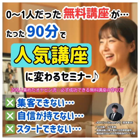 0〜1人だった無料講座が…90分で人気講座に変わるセミナー♪ オヤビン流:3つの型でつくる“わたしらしい無料講座”の作り方