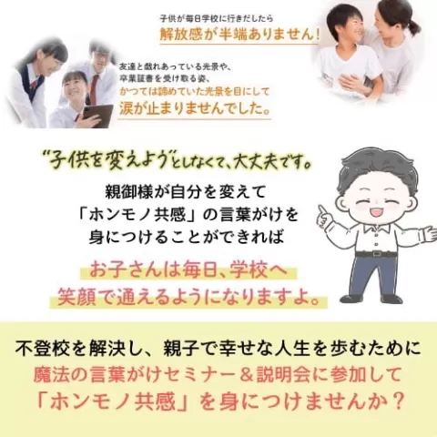 💮不登校だけでなく、ゲーム依存や子育ての悩みからすべて魔法がかかったかのように解放される「魔法の言葉がけ」ホンモノ共感®体験セミナー💮